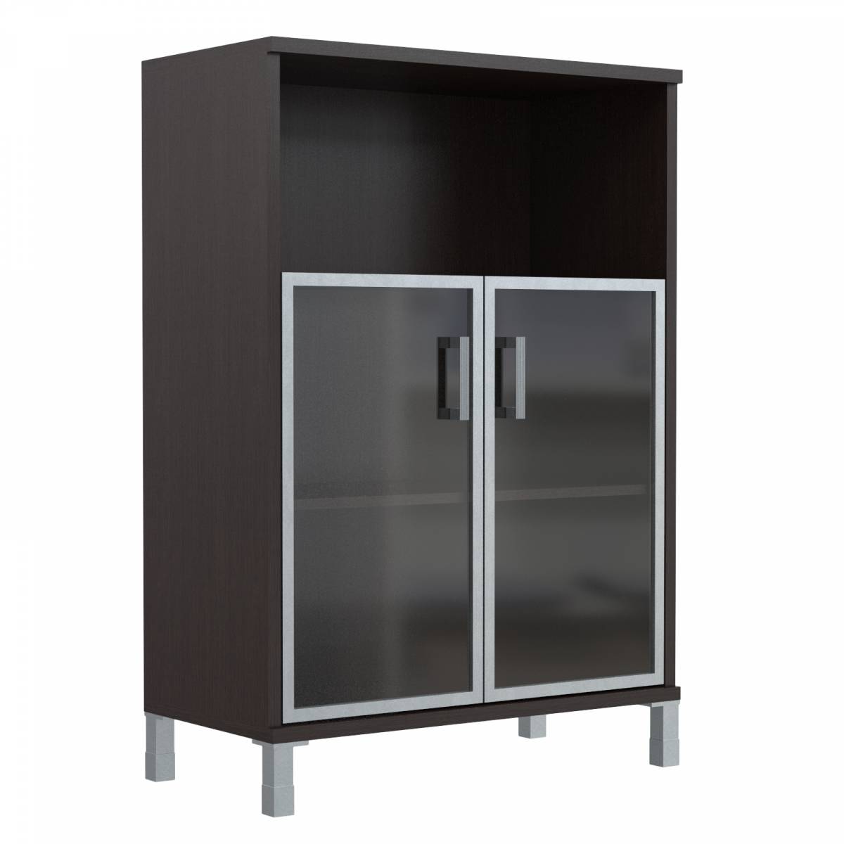 Шкаф низкий со стеклянными дверьми в AL-рамке B 410.4 Венге Магия 900х450х920